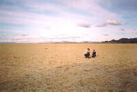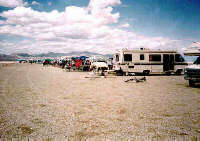 We have been there twice. In Spring 1994 we went to the AERO-PAC Aeronaut 5 rocket launch, and took pictures for the Web. The weather was mid-70s, clear, and mostly calm. We stayed in the middle of the lake bed in a motor home next to the launch area. (Hey, that's it in the picture!)