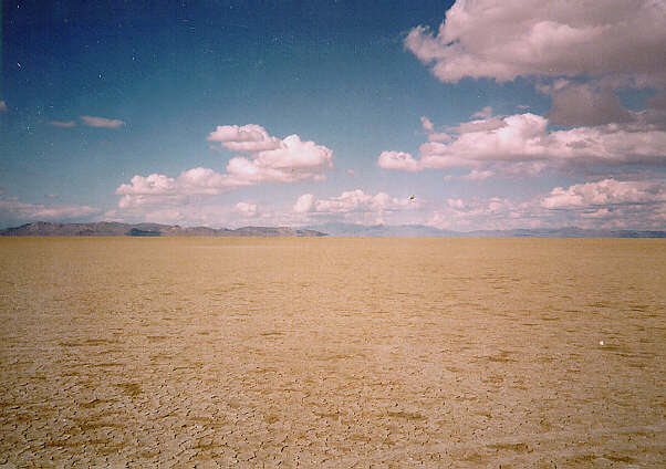 Actually, the "Black Rock" from which the desert gets its name is the dark rock at the base of the mountain half-way between the left edge and center. Distances are deceiving on the desert. It's actually about 20 miles away.