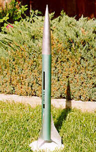 This uses E through G motors like the Mustang. Since it is heavier, it does not go as high, so it is not as easy to lose sight of. It is our favorite large model rocket. It climbs steadily and opens within clear visual range with a large yellow parachute. We launch this at Livermore, Hayburner, and Black Rock.